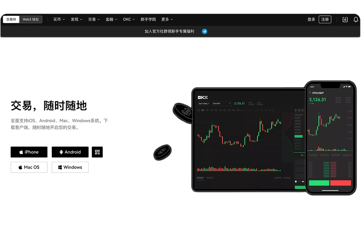 欧易iOS/Android客户端融合行情、交易、资讯、钱包核心功能